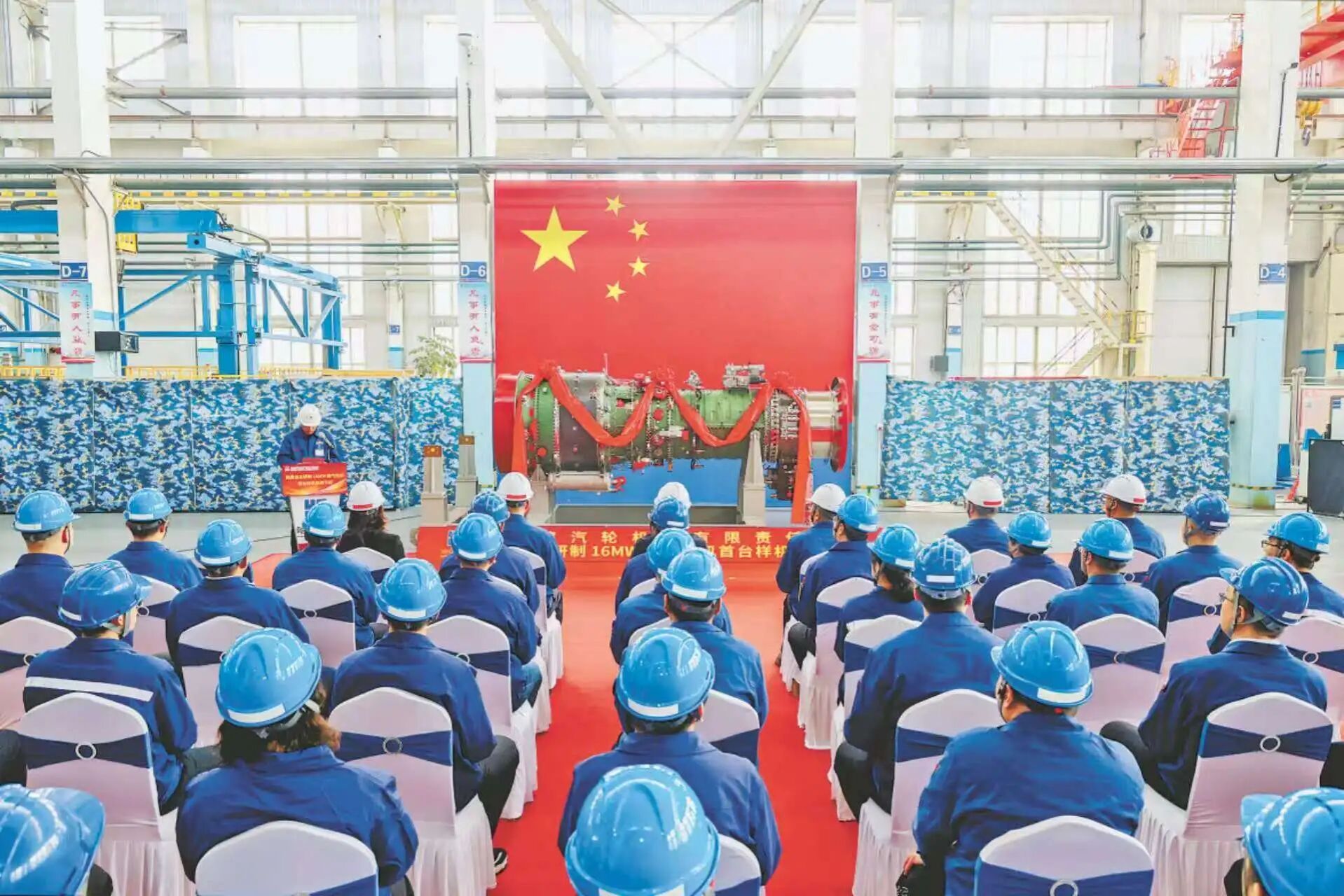哈电集团汽轮机公司自主研制的国内首台16兆瓦燃气轮机样机(HGT16)成功总装下线并满负荷试车成功。
