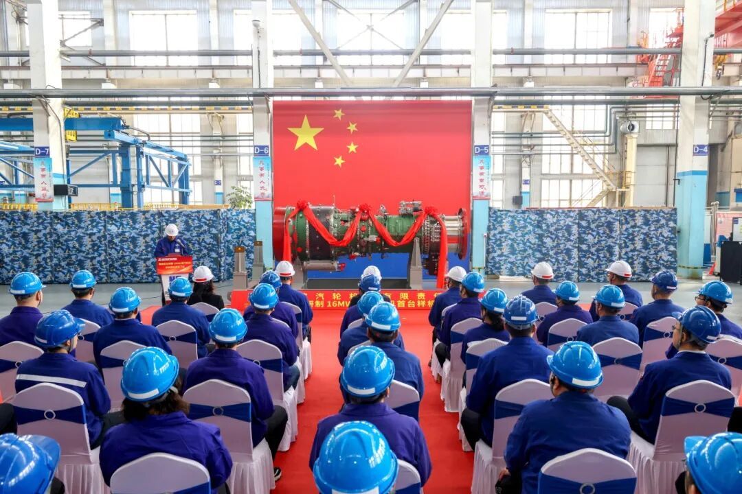 哈电集团自主研制的国内首台16兆瓦燃机成功总装下线并一次点火成功。