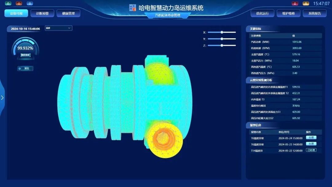 哈电智慧动力岛主设备运维系统展示模拟图。