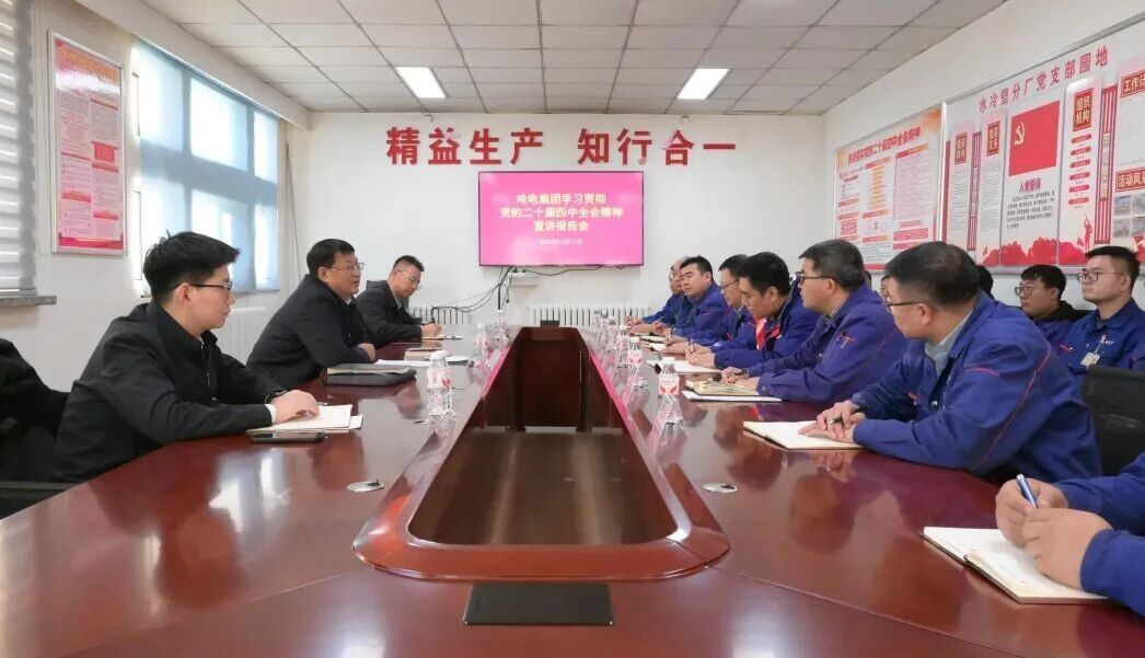 近期,哈电集团党委班子成员紧紧围绕习近平总书记重要讲话精神和党的二十届四中全会精神,深入分管领域、党建联系点开展宣讲,从深刻学习领会全会的重大意义、深刻把握全会精神的丰富内涵与核心要义、切实把全会精神转化为公司高质量发展的生动实践、为推进全会精神落地生根提供坚强保障等方面,进行全面阐释和深入解读,进一步统一思想、坚定信心,为公司“十五五”期间高质量发展提供坚强思想保证。