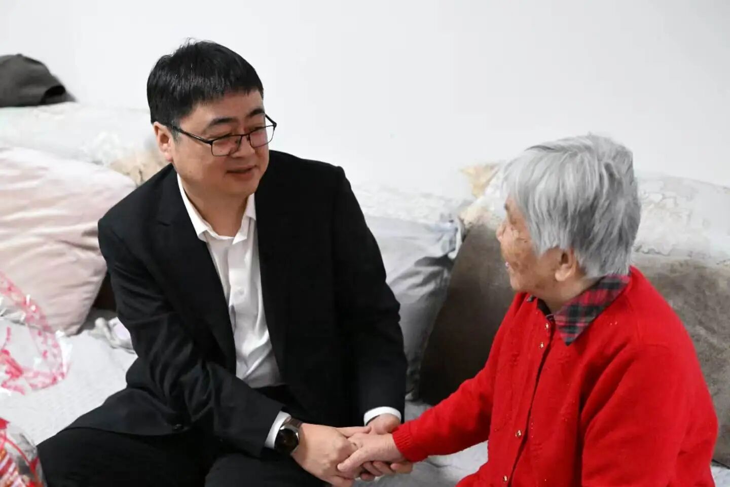 刘清勇看望98岁高龄、85年党龄,1941年参加革命工作的老党员刘玉祥。